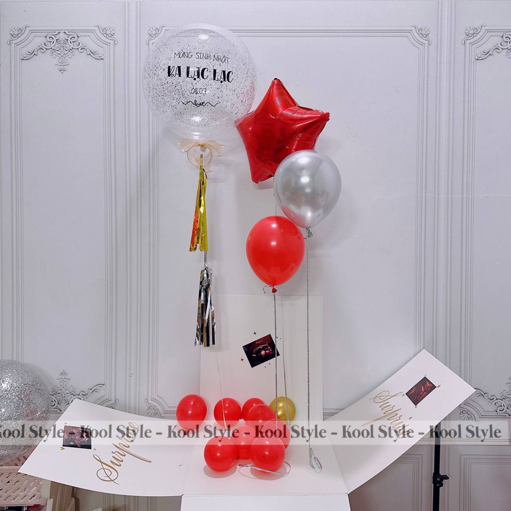 Có rất nhiều những ý tưởng tặng quà với hộp quà bong bóng jumbo sinh nhật surprise gift box nếu như bạn chưa biết phải tặng quà tặng bong bóng như thế nào? chưa biết nên truyền tải những lời chúc những lời yêu thương ra sao, chưa biết phải ghi gì lên hộp? ghi gì lên bong bóng? liên hệ Kool Style để được tư vấn.