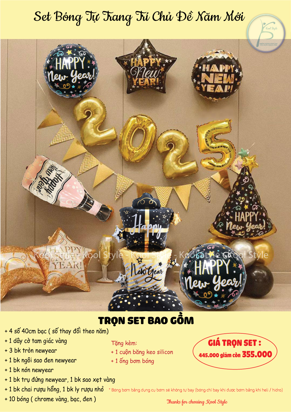 Chào đón năm mới rực rỡ với Set bóng trang trí chủ đề Tết – Năm Mới tone màu vàng đen thanh lịch sang trọng, giúp không gian nhà bạn, cửa hàng hay văn phòng trở nên nổi bật, may mắn và đầy tài lộc.
